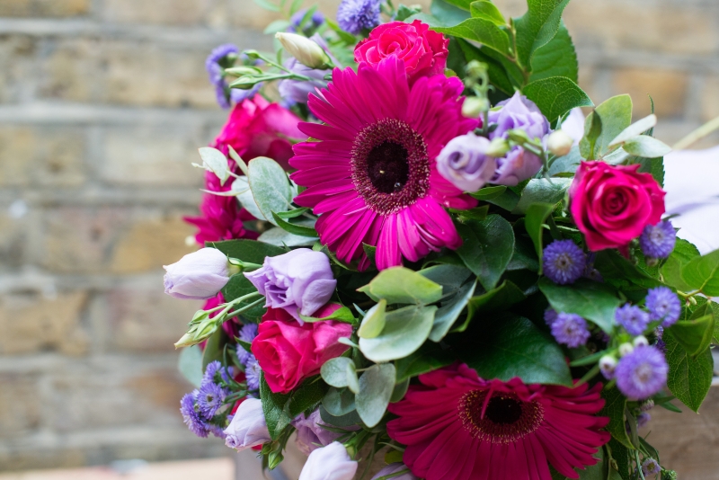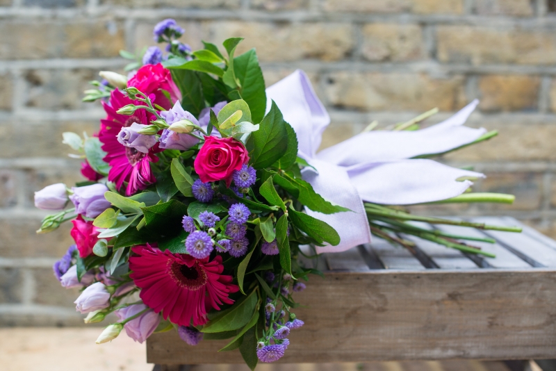 This pretty pink and purple bouquet keeps Abigail true to her name.